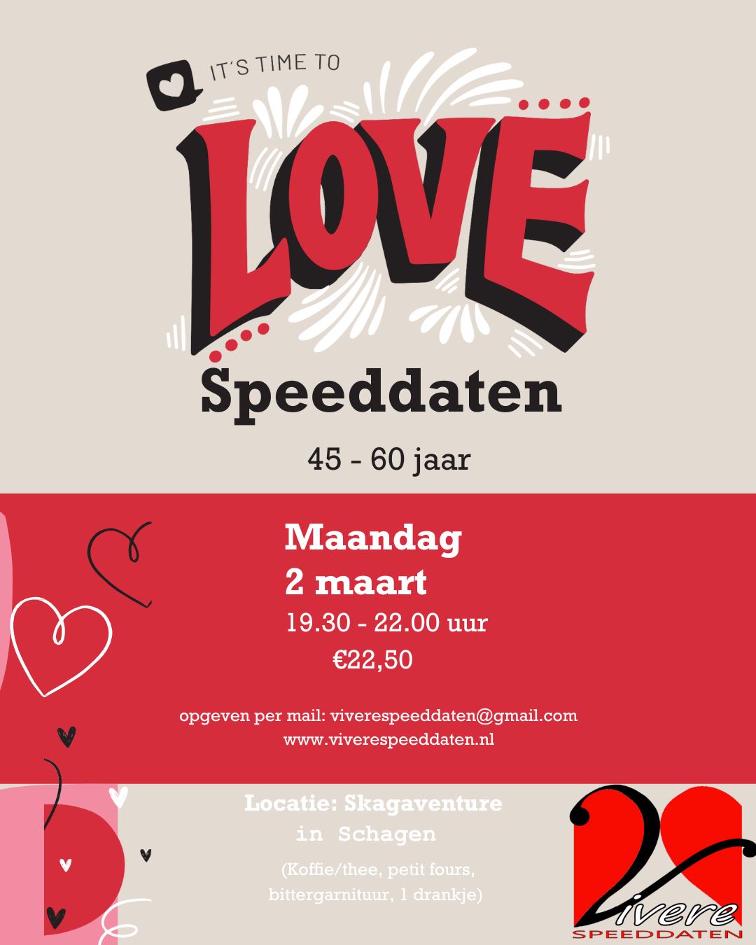 Speeddaten is een ontspannen en verrassend leuke manier om in korte tijd nieuwe mensen te ontmoeten. Het is laagdrempelig, gezellig en helemaal georganiseerd zodat jij alleen maar hoeft te genieten. Zodra je binnenkomt, staat ons team klaar om je welkom te heten en precies uit te leggen hoe de avond verloopt. Je weet dus altijd waar je aan toe bent.
